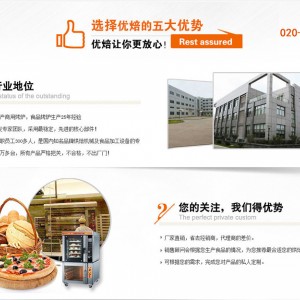 广州市优焙烘焙设备有限公司企业拥有6万多平方米厂房,在职员工逾300人,是国内知名品牌烘焙机械及食品加工设备的专业生产厂家,年生产烘炉超3万台,主要有热风旋转炉、热风循环烘箱、商用多层烤箱、多功能组合烤箱、履带式披萨炉、醒发箱、搅面机、打蛋机...... 各系列产品均获得了国家颁发的工业产品生产许可证及检验合格证。